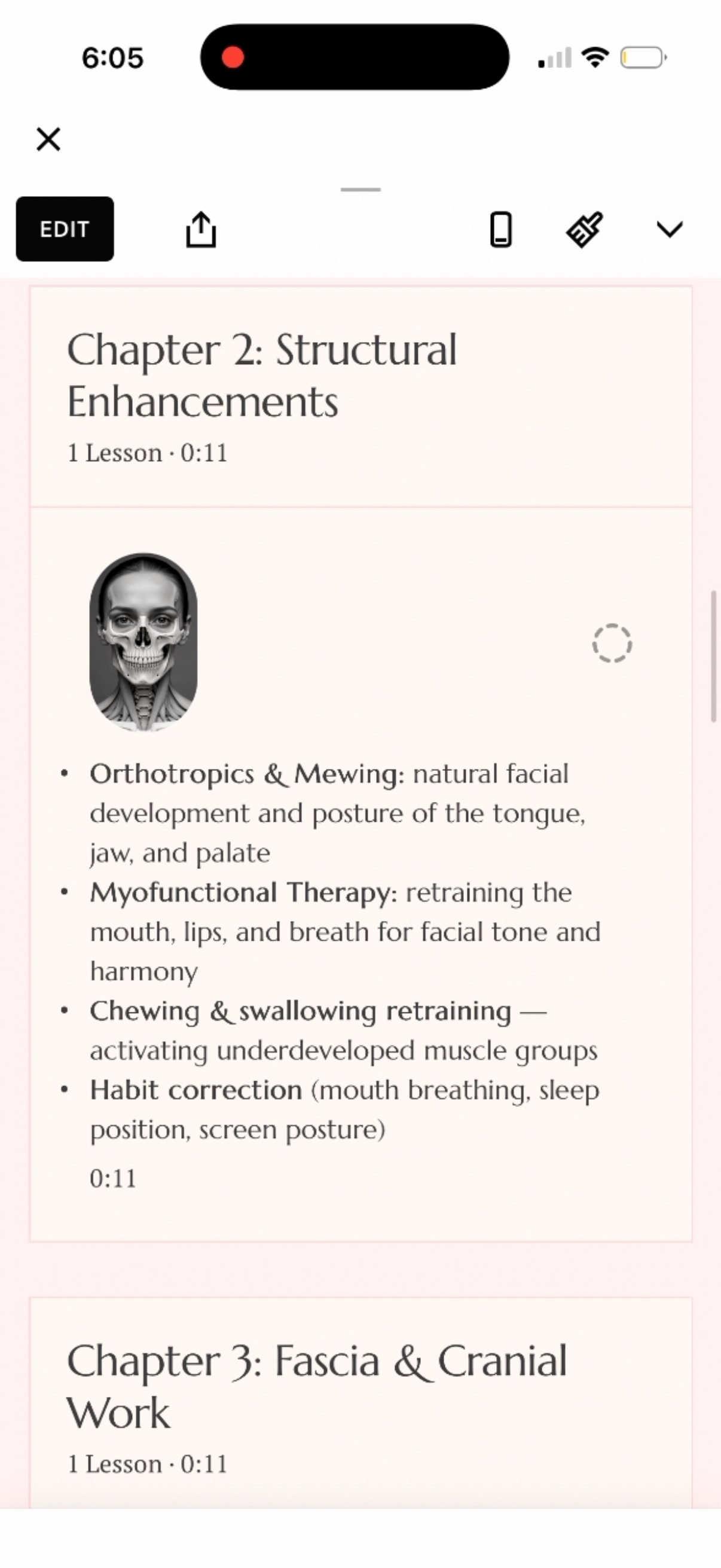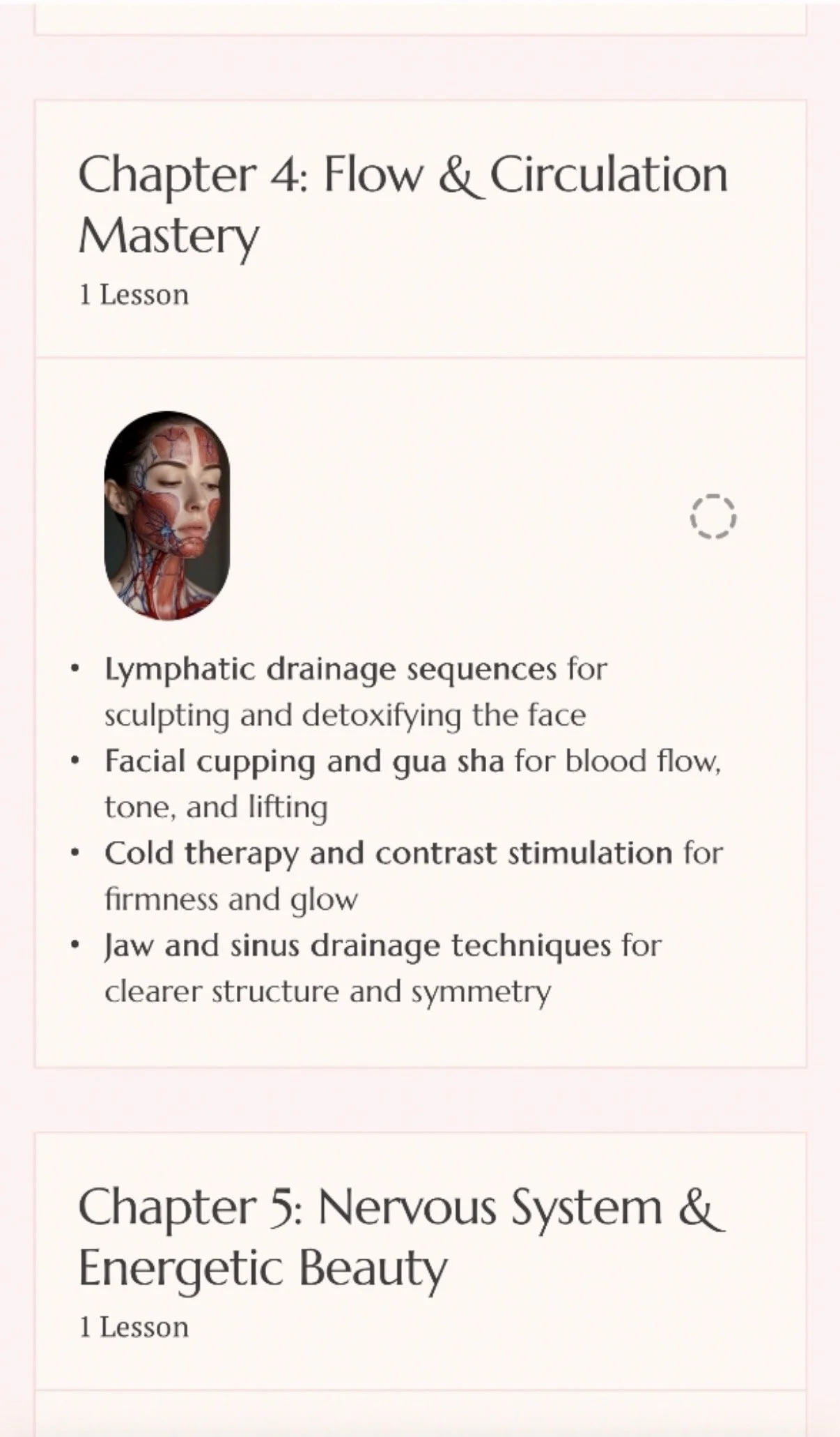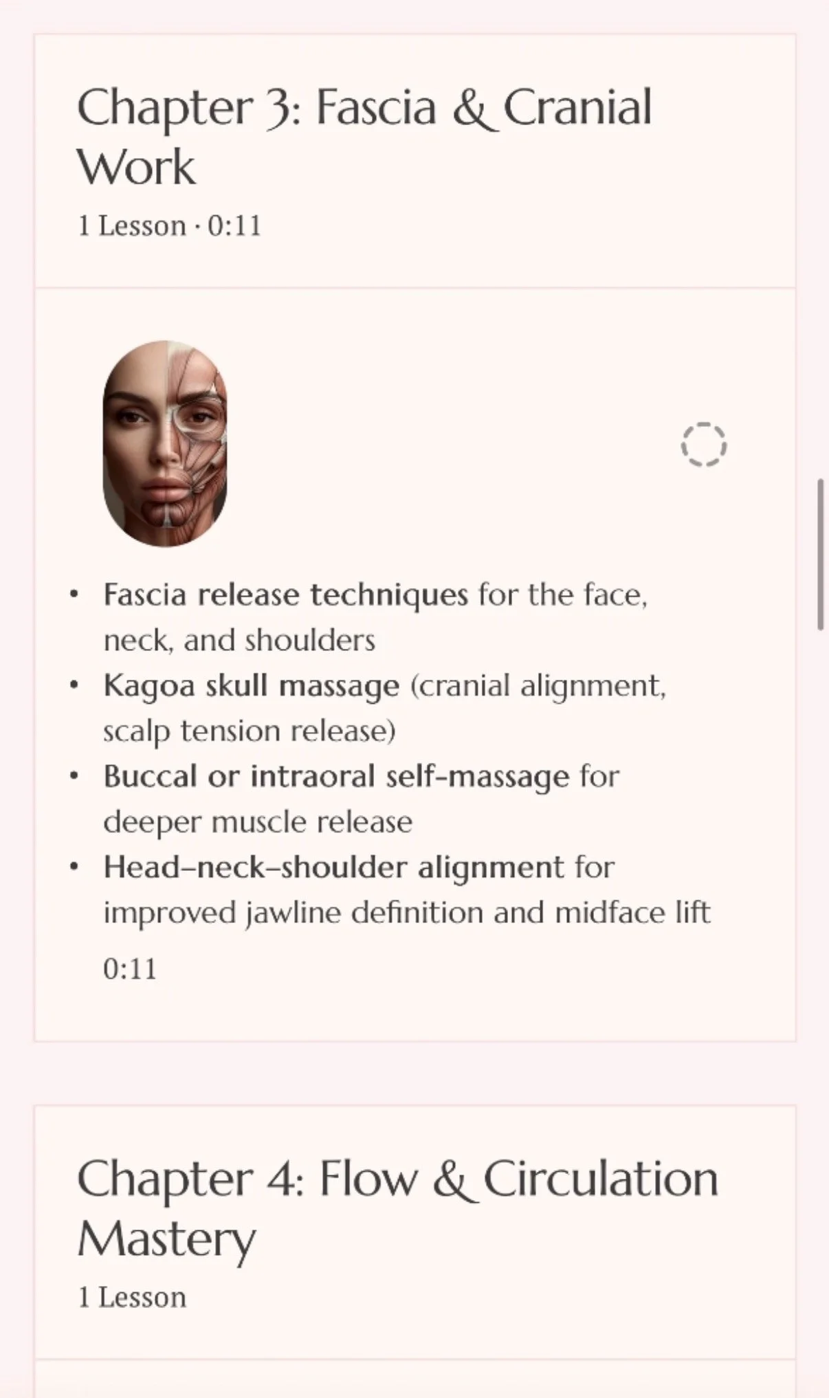 We begin with Health, Wellness, and Hormones, the true foundation of lasting beauty, helping you restore balance and glow from within. From there, we move into Facial Aesthetics, where you’ll discover science-backed methods to naturally enhance your features, improve facial symmetry, and refine your proportions using your own muscles and bone structure.